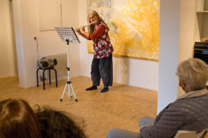 Musical and artistic practice is a way of life. „Artpraxis“ is a space to immerse oneself in the creative flow, both internally and externally. In flautist Ulrike Lentz’s studio, music, art, and openness find their place. Flute, piano, and other instruments, rehearsals, composing, painting, listening… The courses, concerts, and workshops take place in an intimate atmosphere in the studio, in the garden, or in front of the house. A nearby nature reserve invites relaxation.